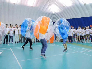 項目說明: 每組派出得力干將,身披超級防護球體,在劃定的范圍內,使用球體將對手撞出線外。規定時間內損兵折將最多的小組輸。 項目收益: 田忌賽馬,重在懂安排;