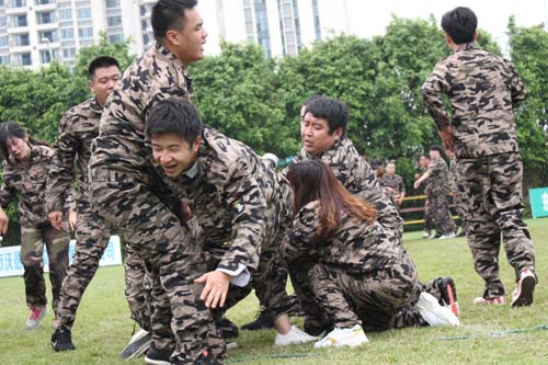 中金國禮300員工從全國各區域集中到東莞群英會培訓基地,通過為期兩天三夜的企業團建拓展訓練,增進了各地區域部門員工之間的感情和溝通交流;同時,提升團隊凝聚力,激勵員工有更高的工作效率和拼搏精神,為實現公司業績在每個階段的最大化!